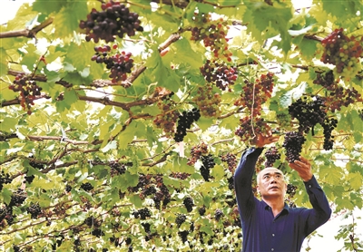 近年来,河北省滦县东安各庄镇前商家林村积极发展大棚葡萄种植,走出一条增收富民路。 新华社记者杨世尧摄