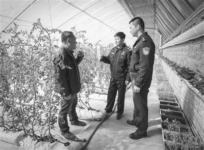 民警到农家大棚宣传安全防范知识。 成治国摄