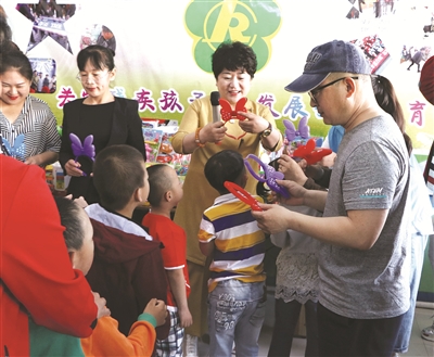 5月20日是第28个“全国助残日”,在这个充满爱的5月,白城市特殊儿童康复中心开展了以“全面建成小康社会,残疾人一个也不能少”为主题的爱心公益活动。我市青年志愿者协会、乐善公益协会、家乐药业等探望了在训康复儿童,为他们奉献爱心、捐赠了物品。图为爱心志愿者为残疾儿童捐赠礼物。 本报记者刘冠男摄