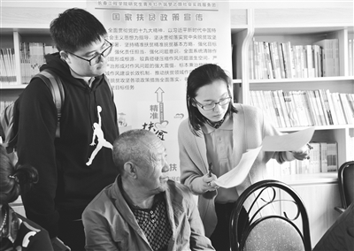 为进一步增强研究生的社会责任感,为脱贫攻坚贡献力量,近日,长春工程学院研究生院组织志愿者来到扶贫包保的洮北区东胜乡春光村和新合村,以问卷调查、访谈等形式了解农村现状,并结合学院专业特点,以开设农业科技讲堂等形式,开展“精准扶贫,最美乡村”主题社会实践活动。图为研究生志愿者进行扶贫工作问卷调查和政策宣传。 王绍利摄