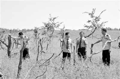 民行部干警在向海核心区查看被毁蒙古黄榆情况。