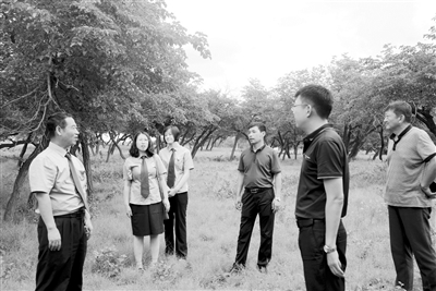 民行部干警深入兴隆山镇黄榆核心区查看被毁林地复绿情况。