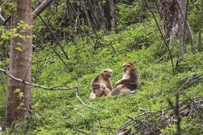 经过动物保护人员的多年努力,加之当地生态环境的不断改善,湖北神农架金丝猴得到有效保护。目前,神农架金丝猴数量比20世纪80年代最少时已增加一倍多。 新华社记者杜华举摄