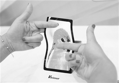 图为近日,维信诺工作人员介绍“双向折叠柔性屏”。 (据新华社)