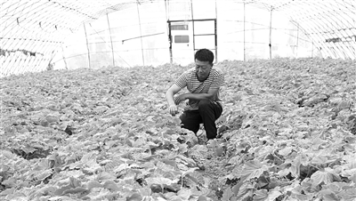 洮北区洮河镇楚伦村52岁村民孙军,利用大棚种植香瓜已经有6年了。今年他又种植了5栋大棚的香瓜,预计可收入10万元,成为楚伦村的致富典型。图为孙军在大棚里忙着侍弄香瓜。