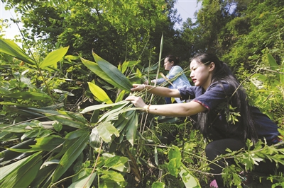 6月11日,人们在湖南张家界市武陵源区山林间采摘粽叶。