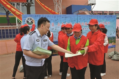 近日,通榆县创建全国禁毒示范城市启动仪式在该县鹤乡体育广场举行。此次活动悬挂横幅30余条,摆放展板10余块,发放各类禁毒宣传资料2000余份,接受群众咨询100余人次,形成了浓厚的禁毒宣传教育氛围。图为禁毒志愿者、社会各界群众在“全民动员、众志成城,共同创建全国禁毒示范城市”签名板上签名。 刘畅摄