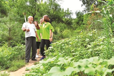 7月17日,山西农业大学几名研究生在吕梁市临县中庄村了解五保户薛存元(左一)的家庭情况。