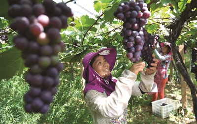近日,江西省南昌市湾里区1000余亩葡萄进入丰收采摘期,葡萄园里一派繁忙景象。