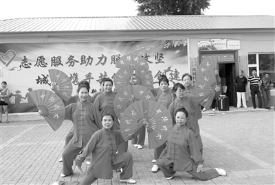 社区工作人员、醉美夕阳舞蹈队、在职党员等50余位爱心志愿者为三合乡凤城村的村民送去了文化大餐。演出在舞蹈《欢聚一堂》中拉开帷幕。二人转《猪八戒拱地》、花样舞蹈《太极功夫扇》、男生表演唱《光腚娃娃老兄弟》、女声独唱《我爱你,中国》、扇子舞《红梅赞》等13个节目,赢得村民的阵阵掌声。舞蹈《好运来》将演出推向了高潮。