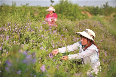 近年来,河北省内丘县在丘陵山区利用流转土地的方式建设药材种植基地,成立中草药种植合作社,采用“基地+合作社+农户”的模式发展中草药种植,为农民开辟一条致富增收的新途径。目前,内丘县种植各类中药材10万亩,产值达20亿元。 新华社记者牟宇摄