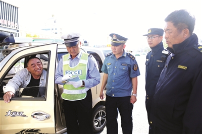 为有效净化道路交通环境,确保国庆、中秋期间道路交通安全、畅通、有序,营造一个欢乐祥和的节日气氛,近日,市公安局交警支队协同市城市管理执法局、市交通局运管处联合整治改装、拼装三轮车,对没有营运手续、无驾驶证的车辆进行检查。截至目前,共依法查扣车辆239台,为两节期间营造了较好的道路交通环境。 本报记者张殿文摄