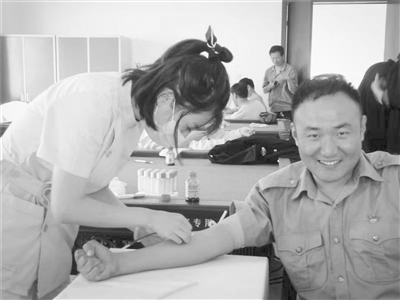 日前,白城市中心血站与白城铁路机务段携手组织干部职工开展了无偿献血活动。当天,白城铁路机务段共有140名干部职工无偿献血,献血量达42000毫升。图为白城铁路机务段职工闫肃在采血中。