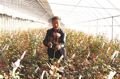 洮北区脱贫攻坚战打响以来,东胜乡奋战村结合村情民情,成立新益农种植专业合作社,争取到“一事一议”扶贫资金120万元,建设占地面积2880平方米温室大棚4座,用于鲜切花生产。采取“企业+合作社+贫困户”的扶贫模式,以分红的形式帮助贫困户脱贫,同时还吸纳当地没有技术、没有资金的贫困户在合作社打工,让贫困户当“工人”,增加贫困户收入。目前,鲜切花产业已成为奋战村产业扶贫的主力军。图为农户在大棚里查看鲜切花长势。 王维俊 本报记者张殿文摄