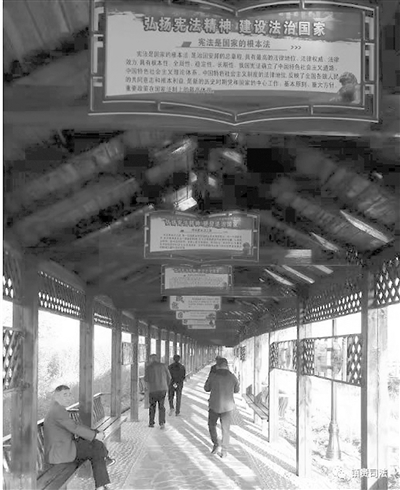 图为集休闲、娱乐、普法于一体的法治文化长廊已成为市民休闲的好去处。
