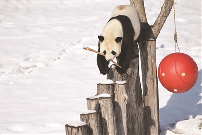 饲养人员说,大熊猫很喜欢下雪,目前中午气温在零摄氏度左右,它们在室外活动不受影响。气温低于零下20摄氏度,工作人员会减少它们在室外活动的时间。