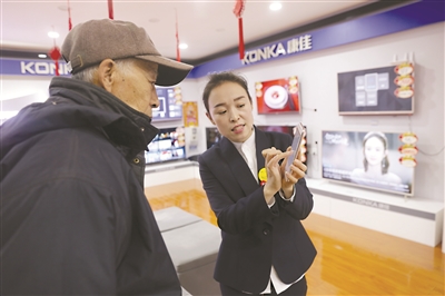 当年,白城市百货第一商店刚成立家用电器部,商品种类还比较单一,但人们对家用电器的需求非常迫切,购买热情高涨。那时商店主要经销收录机、电唱机、黑白电视机等。为了满足群众的需求,商店党支部书记王春玉每天晚上带头加班卖电视机,王春玉帮助顾客挑选电视机的场景被我定格并发表。