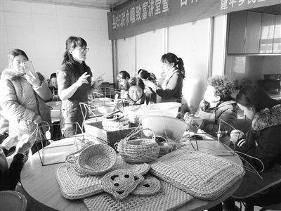 为进一步拓宽精准脱贫帮扶渠道,加快全县农村妇女致富步伐,提高广大农村妇女脱贫增收能力,近日,镇赉县妇联在建平乡民生村举办了巾帼致富讲堂暨“吉林镇赉巧姐”草编技能提升班。图为该村妇女在学习草编。 王志华 周冰摄