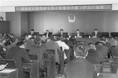 民惟邦本,本固邦宁,苍茫鹤乡大地,岂容黑恶势力有藏身之处。站在时代的节点,通榆县委先后4次召开常委会专题研究部署扫黑除恶工作。在紧锣密鼓的筹备中,2月27日,全县扫黑除恶专项斗争会议召开,紧紧围绕“为什么开展扫黑除恶专项斗争”“谁来扫”“扫什么”“怎么扫”等关键问题破题开篇,形成了以中共通榆县委为核心,以县委政法委牵头,以公检法、组宣纪为主体,以人民群众为依托,各地各部门联合参战的扫黑除恶专项斗争工作格局;会议下发了《通榆县扫黑除恶专项斗争实施方案》,成立了通榆县扫黑除恶领导小组,全县22个乡(镇、场)3个街道37个部门签订扫黑除恶责任状;明确了扫黑除恶专项斗争“一年打击遏制、两年深挖根治、三年长效长治”的工作任务,结合县情实际,将十个重要领域和十类重点人群作为“十必查”“十必打”对象。