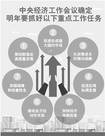 “七大重点工作任务,说到底就是在进一步深化改革开放中推进经济高质量发展,改造传统产业,大力发展新产业,加快建设现代经济体系,让高质量发展的道路越走越宽广。”张燕生说。 (新华社北京12月21日电)