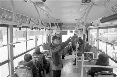 为给市民出行提供文明、便捷的交通环境,日前,白城市公交公司督察小组对公交车文明出行情况进行了抽查指导,重点检查司机佩戴安全员袖标、公交车卫生等情况。图为督察小组人员正在进行检查。本报记者王野村摄