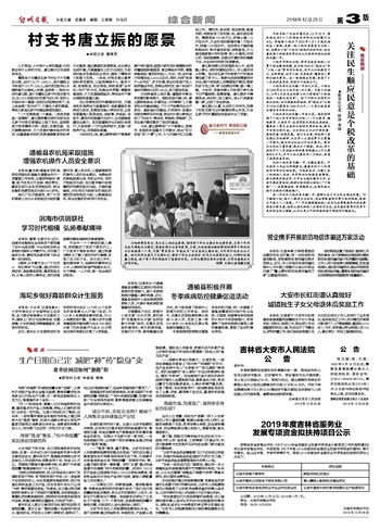 今年年初以来,唐立振带领村干部挨家挨户进行宣传,鼓励大家利用水稻插秧后的闲置庭院种植蔬菜、黄豆等经济作物,调整种植结构,增加农民收入,仅此一项,全村每户均增加收入800元左右。同时,利用“贫困户+合作社”,多方协调,使全村贫困户加入到养鹅合作社,按照合同约定,每个贫困户每年可得到分红约380元,助力脱贫攻坚。