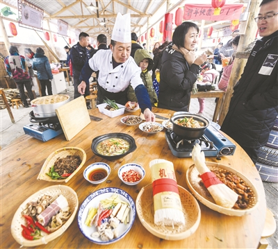 当日,浙江省杭州市临安区清凉峰镇举办一场乡村美食大赛,100多道当地特色乡村美食让众多游客和当地百姓在欢乐喜庆的气氛中迎接新年。 新华社记者徐昱摄