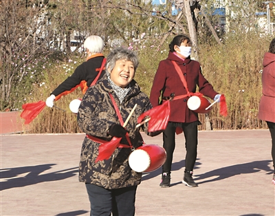 老城改造让城市发生了巨变,在市区各个休闲广场,每天从清晨到傍晚,下棋、打牌、练武、跳舞的市民比比皆是。一位打腰鼓的大娘自豪地说:“我觉着咱们白城子比大城市好,空气好、环境好,管理也好,我哪也不去,就在家乡养老。”图为大娘的腰鼓,打得喜庆活泼。本报记者马彬 刘冠男摄