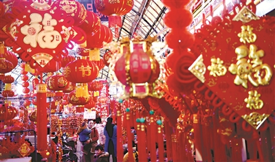 1月20日,安徽淮南市民在田家庵区一市场内选购春节饰品。 新华社记者陈彬摄