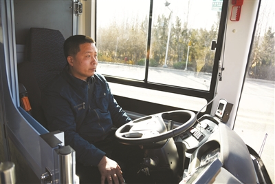 1月22日,测试人员在驾驶位查看行驶中的无人驾驶汽车。