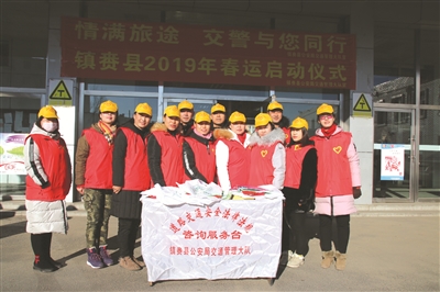 春运期间,镇赉县20余名青年志愿者与交通民警一道向过往旅客和市民发放宣传资料、宣传品,讲解春运出行应该注意的交通安全事项。此外,志愿者还主动帮助旅客提运行李、包裹,受得了广大司乘人员和市民的好评。李文广 何继权摄