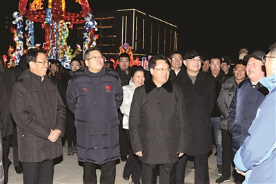 本报讯(记者冯可欣)花灯吐艳映新春,明月生辉度佳节。在元宵节来临之际,2月18日晚,庞庆波、李明伟、葛树立、张馨等市级领导来到市民广场,实地观看了元宵节灯展,与市民一起共迎元宵佳节。