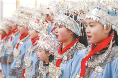 2月26日,榕江县水尾水族乡中心学校的学生们在唱水歌。