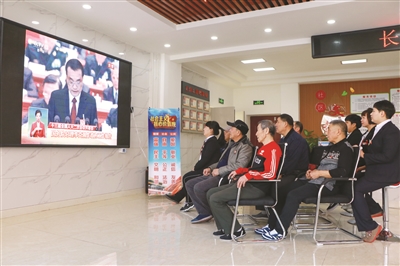 备受关注的全国两会在北京召开。2019年是新中国成立70周年,也是全面建成小康社会的关键之年。对于今年两会,全国人民热切期待,盼望传来更多好消息。图为3月5日上午,洮北区长庆街道丰华园社区工作人员与社区居民观看十三届全国人大二次会议开幕会盛况。