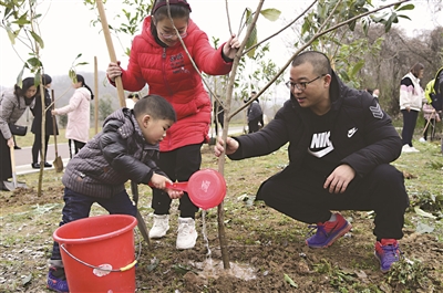 初春时节,人们纷纷参加植树造林活动,为大自然添新绿。 新华社发(石玉成摄)
