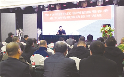 近日,洮北区动物疫病预防控制中心举办了2019年非洲猪瘟暨春季重大动物疫病防控培训班。培训内容包括疫苗的使用方法、注意事项、免疫档案的填写方法和免疫操作规程等。通过培训,不仅提升了基层防疫人员业务能力和技术水平,还提升了洮北区防控动物疫病能力,使各项防控措施在执行中更加科学、规范。王维俊 本报记者张殿文摄
