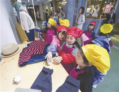 4月2日,参加“童装小学院”特色课程的孩子们在了解童装的细节。