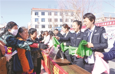 为全面深入推进我市扫黑除恶专项斗争,4月3日,白城市司法局、白城市生态环境局与洮北区明仁街道办事处联合组织开展了扫黑除恶专项斗争集中宣传活动。活动中,工作人员为群众发放扫黑除恶宣传单,到对接社区进门入户发放扫黑除恶应知应会小知识,摸排对接社区涉黑涉恶情况线索,并在现场就群众提出的问题进行了面对面解答。 本报记者刘冠男摄