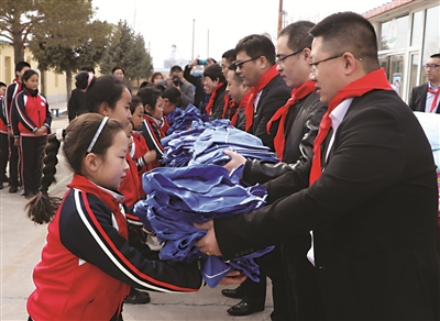 日前,天安人寿保险股份有限公司白城中心支公司携手洮北区瀚海公益协会赴洮北区铁岭小学开展捐资助学活动。志愿者为学生送去被褥35套、桌布90个及学习用品等,共计万余元。 本报记者刘冠男摄