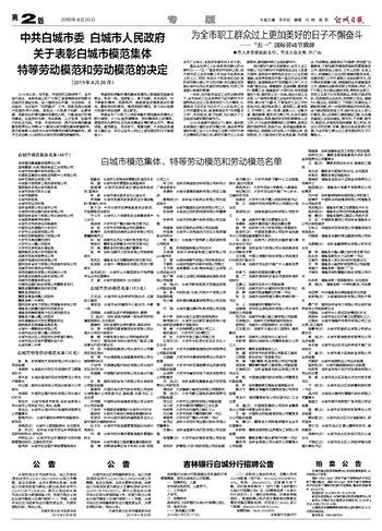值此全世界工人阶级和劳动群众的光辉节日——“五一”国际劳动节到来之际,我代表市总工会向辛勤工作在全市各条战线上的工人、农民、知识分子和其他社会阶层的劳动群众致以节日的问候!向为建设和发展白城作出突出贡献的劳动模范、先进工作者致以崇高的敬意!