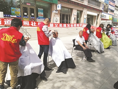 为弘扬中华民族爱老、敬老光荣传统,营造辖区良好精神风貌,5月13日,洮南市光明街道光照社区组织辖区内6名志愿者理发师来到辖区繁华路段开展义务理发活动。短短两个多小时,就有45位老人接受义务理发。