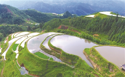 5月25日无人机拍摄的融水苗族自治县杆洞乡党鸠村梯田。