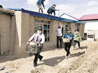 抱行李、拿盆碗、端锅灶、搬家具、拆门窗、掀屋瓦、扒房梁……忙碌的扶贫队员全然忽略掉了不知何时飘起的细雨。
