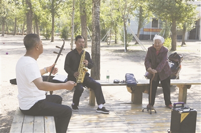老城改造让我市实现了“老城变新城、小区变花园”的完美蜕变,市民的幸福感和获得感也得到提升。图为市民在修葺一新的公园内悠闲演奏。 本报记者王野村摄