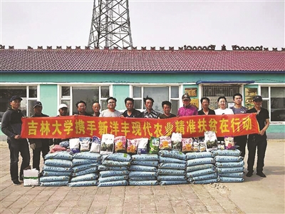 众人拾柴火焰高。2018年,在吉林日报社定点帮扶的通榆县边昭镇五井子村里,吉林日报社协调了84亩贫困户土地用于“百亩盐碱土壤改良及现代绿色农业示范工程”种植地块,吉林大学与通榆县新洋丰现代农业服务有限公司免费投入种子及项目研发的有机肥料。