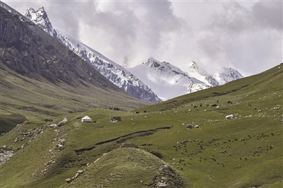 新疆塔什库尔干塔吉克自治县(以下简称“塔县”)拉依布拉克牧场地处帕米尔高原深处,海拔3700米左右,水草条件优越,是当地的主要夏季牧场之一。近日,记者随塔县大同乡阿克托尕栏杆村的扶贫干部一道前往牧场。据介绍,牧民转场即将结束,拉依布拉克牧场迎来放牧黄金时节。近年来,当地采取多种措施加强对牧民的引导,保护草场生态环境。