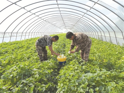 镇赉县镇赉镇南岗子村农民徐成刚使用农家肥种植香瓜,因品相好、口感佳,深受消费者喜爱。在七千平方米的大棚内种植香瓜,年收入可达十二万元。 本报记者李晓明摄