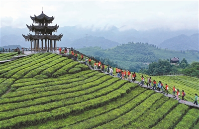 小暑时节,湖北省恩施土家族苗族自治州宣恩县以伍家台村为中心的数万亩茶园里游客络绎不绝。人们到此观光游玩,体验传统茶文化。 新华社发(宋文摄)