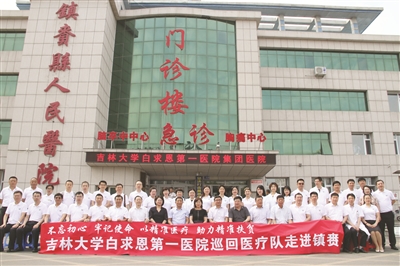 7月11日4时左右,吉林大学白求恩第一医院院长华树成、党委书记佟成涛带领由30多位医务人员组成的对口帮扶及巡回医疗队一路向吉林省的西北角镇赉进发。