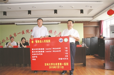 吉林大学第一医院高度重视此次对口支援和巡回医疗工作,组织了阵容强大、“配置”高端的巡回医疗队,成员包括该院13位重点临床科室的主任、9位医院行政管理部门的主任及从医院各科室抽调的派驻到镇赉县医院的医疗骨干专家。吉大一院还向镇赉县医院捐赠了2台世界先进的彩超机、1辆本田汽车、2台监护仪及价值10万元的药品。